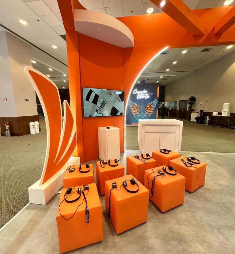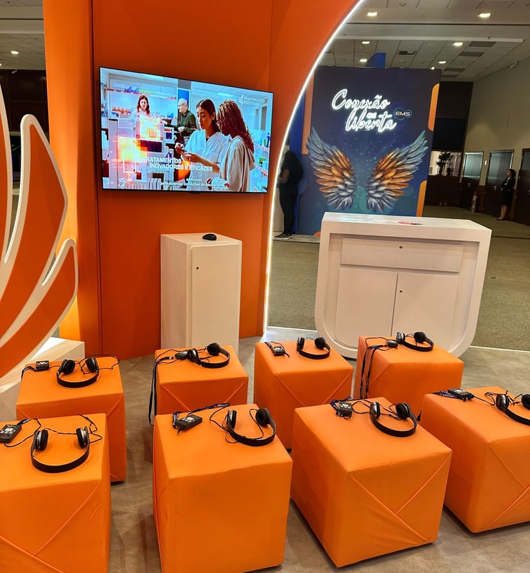 Evita poluição sonora: Ideal para eventos em espaços compartilhados, como feiras ou congressos, onde várias atividades ocorrem simultaneamente.